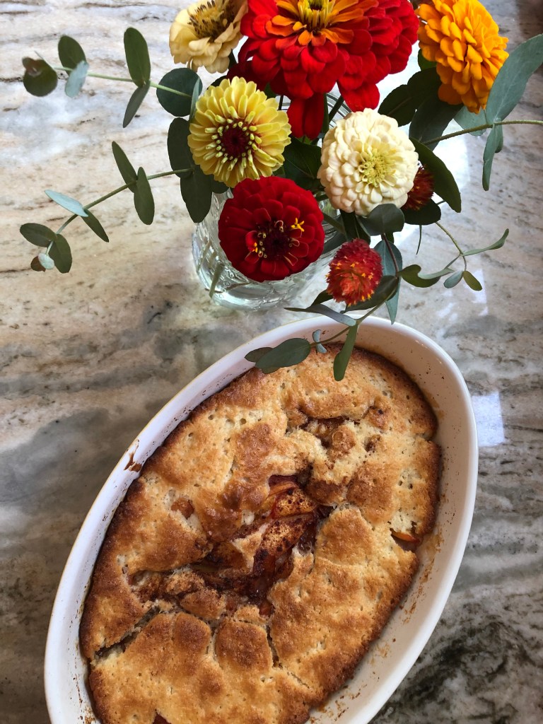 I bought fresh peaches, and learned how to make peach cobbler. I found beautiful cut flowers and warm crab rangoon and connected with neighbors and old friends, too. I already can’t wait to go back next summer.